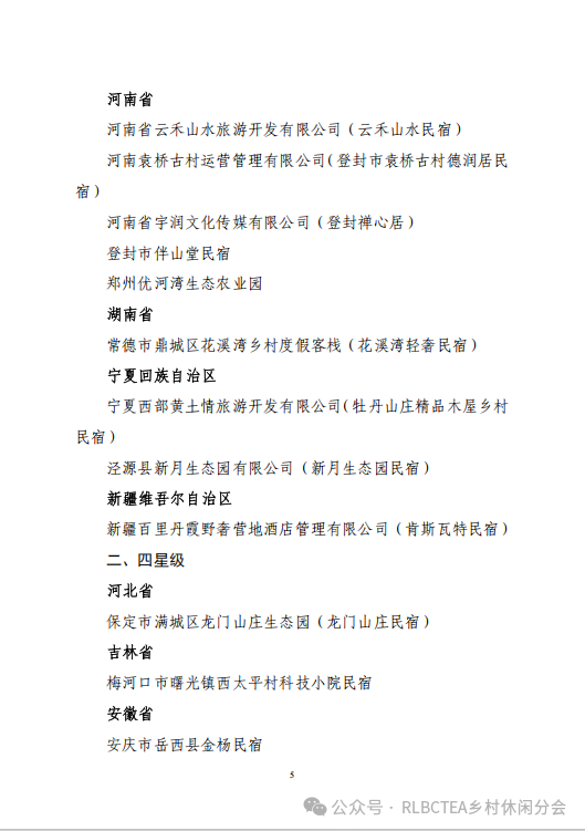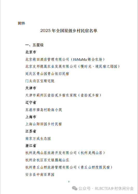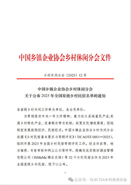 中国乡镇企业协会乡村休闲分会关于公布2025年全国星级乡村民宿名单的通知